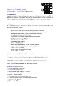 Sous l’autorité des directeurs artistiques et du bureau de l’association, le.la chargé.e de production et administration aura pour missions :