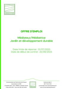 – Diplômé(e) : Sciences de la vie et de la terre ou Environnement ou Médiation scientifique ; BTS gestion et protection de la nature ; formation maraîchage/agricole, autres équivalents.