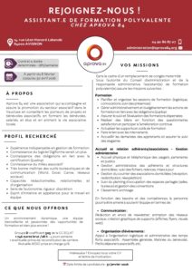 Aprova 84 est une association qui accompagne et assure la promotion du secteur associatif dans le Vaucluse en conseillant les porteurs de projets et bénévoles associatifs, en formant les bénévoles, salariés, et élus et en animant la vie associative locale.